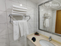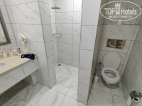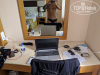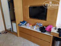 Откровенный старомодный совок. Мебели на взгляд около 15 лет, ДСП структурой и цветом по тенденции конца 90-x. Матрацы новые, очень комфортные, кондиционер обычный квартирного варианта с отдельным внутренним блоком, такое в отелях не используется очень давно. Ванная комната небольшая, шиком не отличается. Непосредственно кабинка для купания сделана бестолково, зазор от двери стеклянной до стены и до пола очень большие. Порожек очень низкий - около 2 сантиметров. Вода постоянно льется в основное помещение, особенно когда купаются дети.