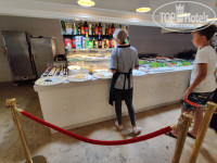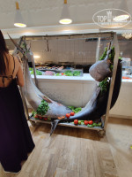 В основном ресторане огромный выбор блюд. Баранина, рыба, говядина, огромное количество овощей, хлебобулочных изделий, более 15 видов сыров. Всегда есть из чего выбрать. Пару дней подряд была красная рыба, мидии, кальмары. Кофе откровенно невкусное по всей территории отеля. Пробовали разное, не умеют они делать хорошего. Из фруктов: постоянно арбузы - очень вкусные, апельсины, яблоки, виноград двух видов- часто зеленоватый, сливы - постоянно твердые, персики - зеленые и твердые, бананы - мелкие и очень вкусные. Плов ужасный - готовить не умеют, суши - полный шлак, жалкое подобие. Молочные каши вкусные, десерты как везде, на вид красивые - на вкус на любителя. Йогурты все кислые. Овощи на любой вкус, все что угодно, сам не пробовал - по вкусу сказать не могу.
