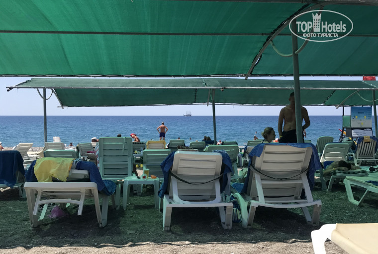 Размещение: до пляжа 5-7 минут пешком через мост или подземный переход. Пляж - камушки, иногда больно заходить. И глубина почти сразу, поэтому когда волны - нужно быть аккуратным, если плохо плаваете. А так вода чистая, шезлонгов достаточно, есть бар на пляже, в определённые часы есть закуски и мороженное.