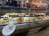 7. Еда - завтрак с 7 до 10, обед с 12 до 15 и ужин с 18:30 до 22:00. Еда нормальная, разнообразная, но без изысков и восторга. Самое лучшее, что давали - манго. Только на ужин и не всегда. Бар у бассейна - приятное место, и там есть кофемашина, можно сделать капучино. В самом кафе его нет. Только кофе, не особо вкусный, который разносит официант, если попросите. Алкоголь мы не пьем, по вкусу сказать не могу, но выбор в баре вроде не плохой. Все бесплатно. В бар в номере развозят: воду, пепси, пиво.