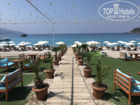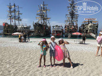 Пляж - широкий и очень длинный, с белыми шезлонгами и зонтиками (платными - за 2 шезл и зонт 45 лир = 150 грн), вход в море - мелкая галька. на этом пляже стоят большие экскурсионные корабли в стиле пиратов (штук 10), и каждый день они все уходили в море на весь день. нам очень понравился пляж справа от кораблей - с бирюзовыми зонтиками и шезлогами - там красиво сделали: и кафешка, и музыка, и цветы.