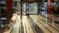 Ночью отель мрачный - подсветки здания нет, неработающий фонтан на входе, сквозь грязные окна пробивается тусклый свет, в холе полутьма, на электричестве экономят.