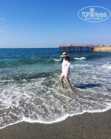 Море тоже красивое. Многие пишут про то что при входе в море плита, да, она есть, но слева вырублен хороший заход в море с песком. Мы купались и с берега и с пирса, по настроению. Лежаков много, всегда хватало. Пару раз ходили на частный пляж очень красивый с гротом, идти минут 10-15 вдоль моря, если выйти с отеля к морю, то нужно идти налево до горы, там подняться по лестнице и внизу увидите пляж, очень красивое место, он платный, но уже не помню сколько, совсем не дорого точно.
