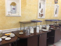 Отдыхаем в юрмино сейчас сертябрь 2021 г. Хочется подельсь этим ужасом который происходит в столовой. Еду просто приходиться выпрашивать, если ты расписан во вторую смену как мы или с процедур не успеваем к началу ( но к началу еды так уже столовую атакают а не хочу так, хочу на отдыхе прийти спокойно и поесть без забот и хлопот. Заходим в столовую куча не прибранных столов и их не кто не собирается прибирать нужно идти и просить, чистой посуды нет, опять нужно просить и ждать( . Мы пришли как то обедать уже все графины с напитками были пустые , а на наши просьбы вынести напитки сказали что вы пока ешьте, а типа потом вам напитки будут…. А если мне хочется пить? Что за шведский стол, что напитки после еды?☹️ И так каждый раз … далее прихожу на завтрак 8.30 ( завтрак с 8.00 до 10.00) пришла в 8.30 между процедурами тк процедуры были и в 8.00 и в 9.00. Но как обычно столов чистых нет, прошу убрать , но не кто на бежит, а у меня процедуры в 9.00! Далее из « горячего» только куски курицы, но я вижу что были сосиски и курицы я утром не хочу… прошу сосиски, но мне говорят кончились и это в 8.30 утра!!!!! Прошу настойчиво сварить тк курицу я не хочу ( пошли варить принесли штук 20!!!!! Представляете, а народ все идет и идет на завтрак)….. короче бегом успеваю поесть до процедур, но больше просто испытываешь стресс( Далее уже не выдержала и написала жалобу на генерального директора, но как так хорошо нет разнообразия, но обеспечьте хотя бы что бы люди могли покушать хоть что то, что они едят. Директор несколько дней дежурил в столовой, было чуть лучше. В выходные , видимо народ уехал, а новые люди еще не заехали , мы поели нормально. Но про предыдущие дни еще хочется сказать , что вроде и установки на раздаче есть, но еда вся холодная( стоит одна микроволновка там можно еду погреть!( и это в санатории греть еду в микроволновке( про фрукты , нам их не разу не хватило, но и за наши 5 дней был только виноград и резаные апельсины и это в сезон арбузов, дынь и тд…. Виноград выносили На одной небольшой тарелке, все сразу расхватали и когда мы попросили принести фрукты нам сказали, что были это остатки!!! Как так получается, кто пришел первым того и тапки, а если у тебя процедуры или тебя записали в столовую во вторую смену то ты и без еды и без напитков и без фруктов!!! Про выпечку за 5 дней нам досталось по паре булочек. Булочки выносят на маленькой тарелке для второго и их тут де расхватывают и ВСЕ!!! Сегодня понедельник 06.09.21 утром все повторилось( ругаться было не когда да и не хотелось уже, но на утро правда немного сыра досталось и масла😀 если на подносе нарезка закончится, то все не успели( сосиски закончились( поела омлет холодный, пару огурцов свежих и творог ( вроде творог был каждый день) а вот сметану проблема дождаться к нашему приходу ее нет, а что бы все попросить, что бы донесли не дождаться будет( сегодня обед: пришла я в 13.50: из гарнира только греча и все( я ее не хочу тк гречка мне кажется каждый день. Макароны уже закончились и их нет( но правда принесли рыбу жаренную. Взяла без гарнира. Успела налить компот из шиповника, положила борщ сижу ем. Приходят дальше люди: борщ закончился , просят донести но все тщетно( сказали доедайте суп- пюре не знаю правда из чего был суп-пюре , но я например его не хочу. Дальше слышу что греча закончилась принесли рис, но люди не все опять едят его, но сказано без вариан