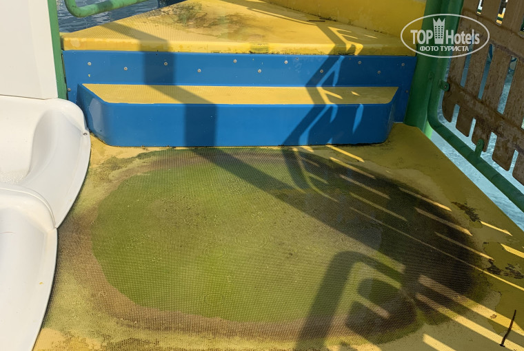 3. Уставший отель. Где-то отколота плитка, двери лифта покоцаны, на функционал не влияет, но педантам сюда лучше не соваться), да и вообще не надо даже рассматривать тур сюда. Детский бассейн требует ремонта (тут всё требует ремонта), на горках антискользящее покрытие полностью утратило свою функцию, вернее переквалифицировалось - скользко как на ледянке. Плитка в стыках позеленевшая. Взрослый бассейн так же требует ремонта, плитка в центре бассейна непонятного зелёного цвета, бог знает что с ней произошло, но это явно не дизайнерская задумка. Лестницы шатаются.