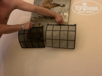 5. «Слабо дуют кондиционеры». Чем мы дышим? А пылью мы дышим! Ради прикола муж снял воздушный фильтр с кондея, думаю на фото все ясно (чёрный - помыт мужем, серый - заросший пылью). Так что в номере 1215 кондей дует теперь хорошо, а главное тихо. На козырьке справа от комода муж оставил небольшой приз для следующего постояльца.