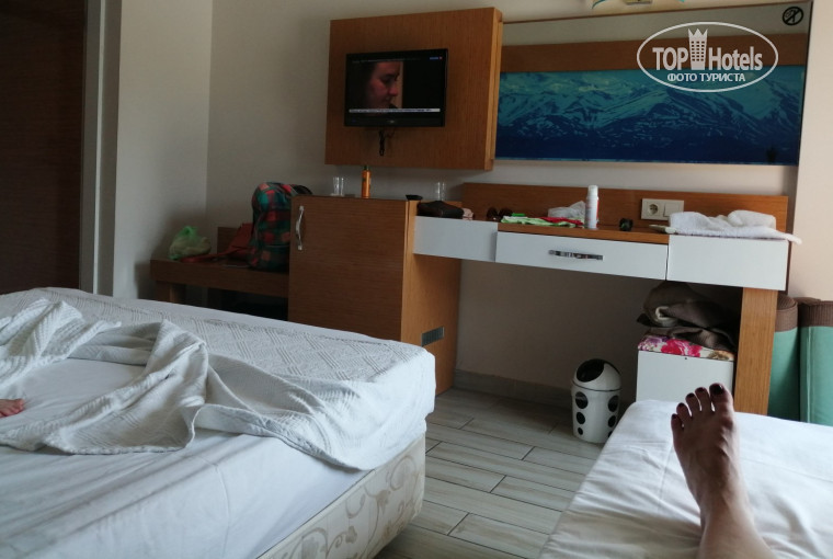 Мистер EMİN i AYNUR на рецепшен встретил дружелюбно, оформил и отправил пообедать чтобы успеть. После обеда сразу поселение, четвертый этаж, балкон на соседний пустующий отель, , номер как для 4**** очень нормальный, все рабочее.