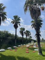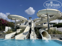 Территории почти нет, такой чтобы ходить-гулять, небольшая полянка и пальмы. Классные горки, кайфовали от них как дети :)