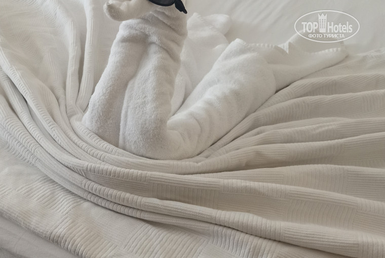 Отдыхали тут до 16 сентября. Рейс был из Москвы ночной, доехали в отель из аэропорта где-то за час, заезжали в один отель, наш был второй. Приехали утром, оставили багаж на ресепшене, пошли в столовую. Нас было три семьи с детьми. Нам дали три номера на 3-м этаже в старом корпусе. 2303 у меня был. Окна выходят на дорогу, где вход в отель. Ночью шумно от дороги и немного слышно анимацию из соседних отелей. До пляжа возит бесплатная маршрутка, едет до пляжа минуты три. Ходит каждые минут 10. Пешком до пляжа минут 10 спокойным шагом. Дорогу переходить небольшую нужно, там нет потока машин, дорога почти пустая всегда. Обратно с пляжа в горку идти, мы не ходили. Лежаков хватает всегда. Еды везде навалом)) бар есть на пляже и у бассейнов на территории отеля два бара. У бассейна в определенные часы дают пончики, арбуз, печеньки. Или бургеры. Пиво, вино, газировка везде в барах. Алкоголь мужья наши не заценили)) Пиво на вкус как пиво нулевка) вино пить невозможно, не вкусное. Капучино, горячий шоколад, кофе вкусные. Фанта, кола и спрайт тоже как-будто разбавленные, не особо сладкие. На пляже есть качельки, на которых можно пофоткаться, до них недалеко идти по берегу налево от лежаков. Черепах ,про которых пишут в отзывах,так и не нашли) Ходили на базар, там показалось всё дороговато. В отеле даже подешевле. Каждый день в номер приносят на человека шампунь, мыло, воду негазированную.При заселении в холодильнике две бутылки - кола и фанта по 1л. Девочки, берите с собой много кондиционера для волос, там он прям очень пригодится)) после солёной воды волосы сложно расчесать без кондиционера) Если что он продается в магазине на 0 этаже. В бассейнах вода показалась прохладной. Горки включают там в определённое время. Еда в отеле нормальная. Морепродуктов конечно там нет. Но голодными не оставались. Главный минус - нет нормального супа и каши для ребёнка.Суп был какой-то типа томатного бульона, для ребенка я взяла отдельно рис и кусочки мяса добавила, получился суп посытней))Всегда была курица на гриле, иногда рыба ( в баре на пляже тоже). всегда есть картошка фри, макароны,зелени всякой куча, оливки вкусные. Сладости некоторые бесвкусные, мне понравились бисквитные. На семью 2 взрослых+ребёнок 2,5 года мы отдали 95 тыс за 7 дней 6 ночей. Я считаю, что отель этих денег стоит. Главные минусы для меня - то, что нет супа и удаленность от моря. Но плюсов для меня лично больше и они перекрывают эти минусы.А, и ещё минус- очереди за едой. Люди как с голодного края приехали. Сами же и создают эти очереди, тем, что всё еле-еле. Но на сладости и овощи можно было бы поставить по человеку ещё, тогда бы очереди не собирались. Иногда не хватало столовых приборов , но их быстро выносили. На пляже мусор убирали оперативно и со столов в столовой посуду ненужную тоже убирали вовремя