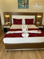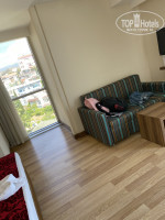 Здравствуйте, отдыхали с мужем в этом отеле с 6по 17 сентября. Заселение прошло хорошо приехали мы около 13:00 заполнили необходимые документы и отправили нас на обед, потому что номер был не готов и спустя пол часа нас заселили. Номер хороший большой у нас был на 5 этаже с видом на город и на море. Сделали комплимент от отеля как молодожёнам в виде бутылки вина, упаковки макарун и пироженого.