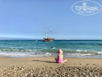 Море. Море красивого лазурного цвета, пляж песчано-галечный. Они там регулярно чистят пляж от камней. Мы были в аквашузах, было комфортно. Береговая линия очень длинная, можно было найти место, где никого не было, только мы. Вода чистая.