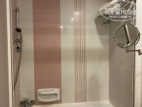 Номер средний по размеру, не новый, но и не обшарпанный, чистый, уютный. Сантехника работающая, без ржавчины и налета.В номере есть бесплатный сейф,мини бар пустой, чайник, чашки, чай-кофе, халаты, вай фай.