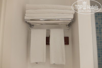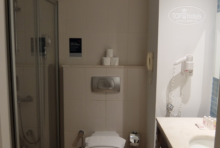 В ванной душ, отделённый стеклянной ширмой, унитаз, раковина. Есть фен. На каждого человека по большому и маленькому полотенцу, гелю для душа, шампуню, мылу. Полотенца белые и пушистые. Сантехника работала исправно.