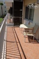 В каждом номере большой балкон напротив двух комнат. На балконе стол, два стульчика и большая раскладная сушилка. На первых этажах балконы не огорожены и можно прямо с балкона выйти к бассейну.