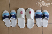 В каждой комнате по кондиционеру, блок управления на стене, охлаждали хорошо. На каждого человека тапки, две пары больших, две – для детей, халатов не было.