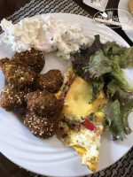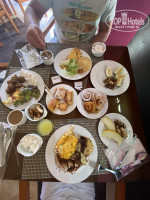 салаты, овощи, фрукты, сладости...в общем всего в изобилии. да, возможно, когда короны не было еды было ещё больше, но мы и так уходили сытые и довольные.
