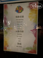 С 14:00 до 17:00 тоже ребёнок находился там.возможно и дольше. Не помню точно. Есть кондиционер там не жарко. С 20:40 вечерняя программа. Идёт 30 минут. Тоже весело.
