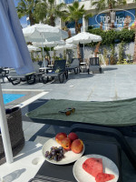 Вода в бассейне 28 сами измеряли. При жаре такой. Это просто рай. В обеденное время прятались в крытом бассейне. Это просто сказка. Спокойная музыка. Не жарко. Никого нет. Вода прохладная ! Но это крытый бассейн! Есть детский бассейн там вода прохладная. Есть 2 горки.