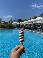 Для детей меня отдельного нет. Но ребёнок 7 лет не был голодный. Спагетти с сыром и куриное филе. Супы ( Куриный, овощной, рыбный, грибной, БОРЩ вкуснейший , типа Лагмана суп ) муж кушал каждый день. Повар главный очень приветлив. Завтрак яйца в разных вариантах , оладьи с мёдом нуттела. Вкуснейшие свежие хрустящие круассаны с каймаком это бомба. Зелени огромный выбор. Даже вкусный зелёный лук свежий был. Черри как мёд. Так же есть у моря и у бассейна бургеры, фри, луковые кольца, картофельные шарики, салаты, и набор орешков из ( кукуруза , арахис, и ещё что-то ) соленое. Под пиво хорошо шло. Вкуснейший солёный айран! В любом количестве. Вода в стаканах, в бутылках. Тоже бери не хочу. фрукты: яблоки бананы груши арбуз дыня слива персики мандарин апельсины( сладкое достаточно) персики вообще мёд. Ещё на обед и ужин подают вкуснейшую пахлаву!! В отеле используют заморозку ( фри, лук кольца , все от магазина МеТРО. Вообще продукты на высоте. Столовая посуда тарелки все красивое.
