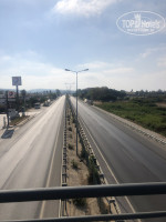 Переход из отеля к морю по мосту.НО пройдя по мосту -НЕ ПОПАДЕТЕ СРАЗУ НА МОРЕ, ( выход к морю заварен балками и натянут сеткой рабицей. С моста нужно спустится и идти вдоль проезжей части метров 300-400 далее огибаем частные бунгало и потом идем к своей пляжной территории ( это еще метров 300-350) В итоге дорога к морю не менее 800 -900 метров.А ЭТО УЖЕ НЕ ПЕРВАЯ ЛИНИЯ.