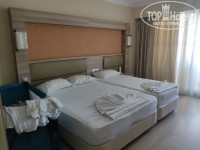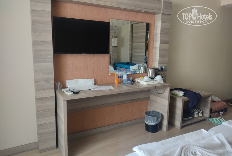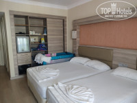 Отдыхали в сентябре с мужем и ребенком (6мес). Приехали мы после 9 вечера, поэтому на ужин не успели. Заселили сразу, помогли поднять вещи. Вид был на бассейн. Номер нам понравился, свежая мебель, уютно, всё работало. Персонал вежливый. Анимации нет, детям делать там нечего (кроме детского бассейна в 1 КВ метр больше ничего нет). Еда разнообразная. Мясо есть всегда (курица , индейка, баранина) . Очень мало фруктов. Для 4* это крайне мало. Яблоки, апельсины(зеленоватые), арбуз(не особо вкусный),к концу отдыха появился виноград. Большой выбор пироженых. Соки явно какие то искусственные. Кофе в аппарате хороший. Чай на завтраке заварной, а на обед и ужин пакетированный.