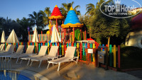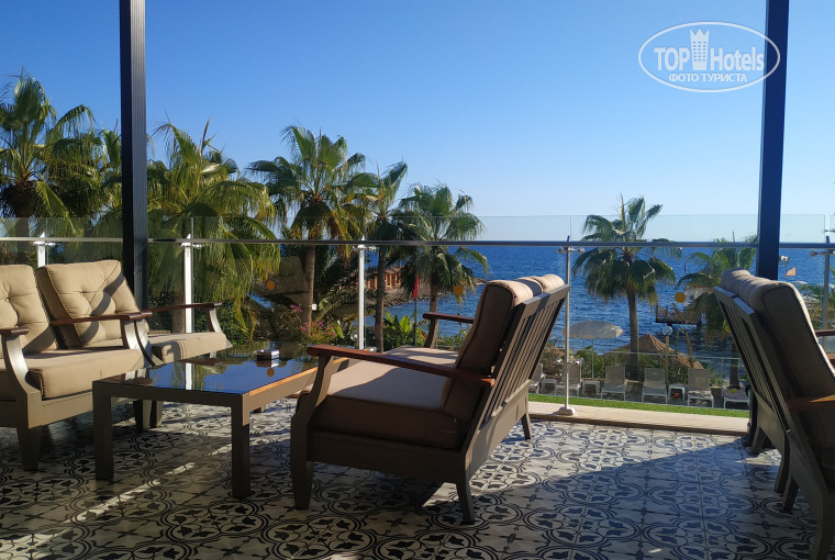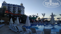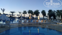 Территория отеля компактная, небольшая, но все очень грамотно продумано, всем всегда хватало места на разных локациях. Лобби большой, просторный, много кресел и диванов. Из лобби выход на террасу, где размещены так же столики с диванчиками. На территории есть два бассейна – один с горками, где проходит дневная анимация и второй возле главного ресторана, он более релаксовый. Работает три горки по часам. Из зоны бассейна выход на пляж. По правую стороны расположены лежаки и вход в море с понтона. По левую сторону пологий вход в море с мелким, мягким песочком. Прямо расположен пирс с лежаками и деревянными беседками. Беседки так же расположены на пляже. Они, к слову, бесплатны, главное утром успеть занять