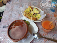 Рядом с полицейским участком есть еда для местных. За 1$ Вам предложат: 2 сырных круассана и сок, или 3 сырных чебурека и сок, или чичю – это сладкий десерт, нам напомнил ванильный чудо-пудинг. За 2$ могут предложить чичевичный суп с требухой (похож на гороховый) и сок. Интересное заведение – ресторан Модеро. Его изюминка не в еде, а в говорящих попугаях. Они знают Хеллоу, Привет, Ола и даже когда смеёмся – они нас передразнивают. Это выглядит очень занимательно. Есть ещё пара магазинчиков и ресторанов, поэтому можно пройтись, посмотреть и сравнить ассортимент и цены.