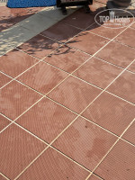 Территория маленькая, что неудивительно для городского отеля, но при этом она грязная и обшарпанная. Всё в отеле выглядит старым, обветшавшим, убогим и неопрятным. Во многих местах прости физически неприятно и брезгливо находится. Побитые дорожки, проплешины, всё покрыто не выводимыми пятнами и разводами, неприятный запах застарелой рвоты. Видно, что со времён постройки не делалось ничего, а просто приходило в упадок и разрушалось. Усилия по уборке заключаются в поливании дорожек шлангами и ручному собиранию наиболее заметных кусков мусора.
