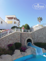 Территории очень зеленая огромная и красивая. Много дорожек, ступенек. Был один бассейн с подогревом, который с горкой. Ленивая река и другой бассейн не подогревались. Мы только один раз были в зоне бассейна, так как на море было в тысячу раз комфортнее и вода не такая горячая как в бассейне.