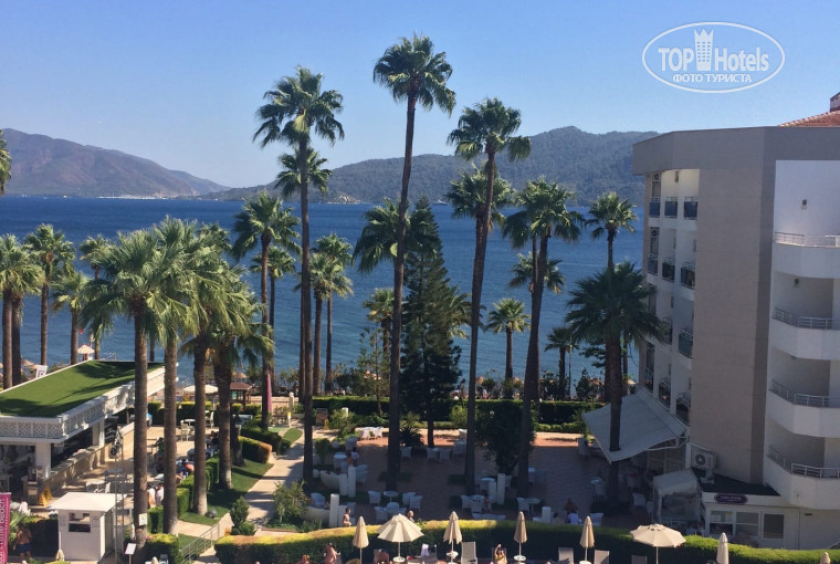 Отель мне поменяли почти перед поездкой( выбранный ранее закрывался) Стала читать отзывы перед отъездом и немного расстроились, слишком много негативных за последнее время. Сейчас поражена - почему? Приехали часов в 10 утра, заселились около 14 (отель заполнен). Заселили в прекрасный номер с видом на бассейн и море. А море в двух шагах. Пляж малюсенький и совершенно не хотелось бежать , теряя тапки, кидать полотенце на шезлонг. Спокойно располагались у бассейна и купаться ходили за 50 метров)) Еда - особая статья. Всего много, очень вкусно. Не понимаю, где увидели порошковые блюда. Очень вкусно готовили мясо и рыбу гриль. Да, были очереди за салатами, но нужно учитывать пандемию. Кстати, очень неприятно было смотреть на туристов, которые уносили из столовой горы( не преувеличиваю) мандаринов Санитария отеля на высоте. У отеля для Мармариса очень большая территория, зонированная. Можно было найти место и в тенёчке и на солнце. Огромная спасибо персоналу - ребята стараются не просто на 5, а на все 10. И отдельное спасибо Полату с ресепции - всегда помогал по всем вопросам.