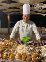 Еда в отеле. Мое мнение, готовят очень хорошо, повара очень стараются, прям мой поклон, МОЛОДЦЫ! Еда не приедается, есть с чего выбрать и для любителей рыбы и мяса. Возможно если жить в отеле 2-3 недели, то еда станет менее разнообразной. Но за неделю, очень разнообразное меню: курица на гриле, тунец на гриле, рыбный вечер с креветками и крабами. Один из вечеров ходили в ресторан, а аля карт, на рибу к сожалению не попали, но был вечер грузинской кухни, мне все понравилось) Соки насыщенные, что мы сами под конец начали разбавлять с водой) Кофе и чай в главном ресторане только на завтрак. В другие приемы пищи, можно брать на баре рядом, делают без проблем. Не было такого, что повара странно смотрели, если идешь за добавкой или просишь побольше. К еде вообще нет претензий, кормили хорошо!