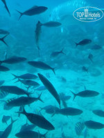 Ну это, конечно, главное, ради чего едут туристы в Египет! Пляж очень просторный. Чисто! Как на пляже, так и в море! "Партерные места" занимают полотенцами часов с 6. Но нормальные места всегда можно найти. Мы. например, предпочитали занимать места на мысу, который разделяет лагуну ( в которой купались) и мелководье с мёртвыми кораллами и камнями, где купаться нельзя, но во время отлива прикольно бродить в кораллках (красные и чёрные морские ежи, рыбки, звёзды. раковины). На мысу, о котором говорю, никогда не бывает испепеляющего зноя, т.к. всегда есть ветерок. Заход в море песчаный. Там кораллки не нужны. Глубина нарастает довольно быстро. уже близко от берега мелкие коралловые островки на дне. А ближе к буйкам несколько коралловых островов побольше высотой в несколько метров. Во время отлива где-то в метре от поверхности верхняя точка. Глубина там метров 6 примерно. Огромное разнообразие рыбок (чёрные. белые. жёлтые. полосатые самых разных видов), видели мурену, наполеона, хирургов, рыб-носорогов, огромную черепаху больше человеческого роста (один раз), разноцветные кораллы. Использовали полнолицевую маску.