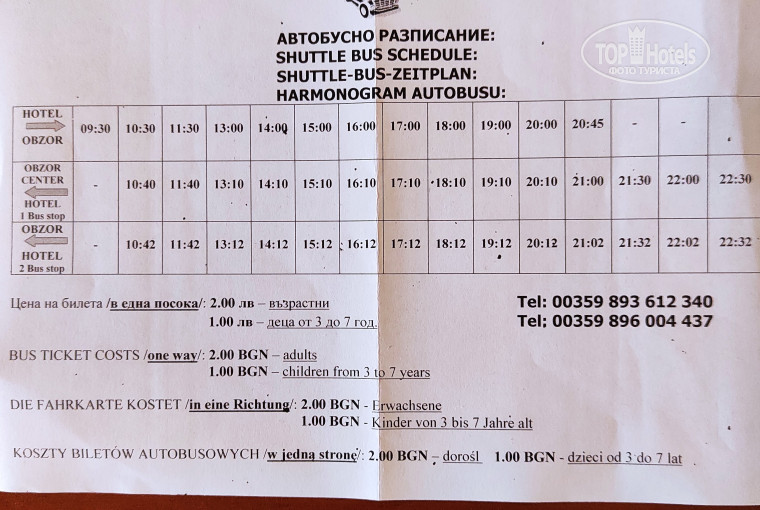 Отель расположен в далеке от суеты, но тем кому скучно в отеле может на автобусе за 2 лев поехать в Обзор или по пляжу дойти (2 км).