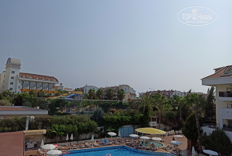 Отдыхали в то время когда Турция горела. Очень переживали что пожары нам сильно испортят отдых, но неудобства были только первые пару дней. Был смог и пепел, через два дня все наладилось. Прилетели рано утром, оставили багаж, спросили где перекусить и переодеться. В спа есть хорошие переодевалки с душем, так что после завтрака мы отдыхали в бассейне. Перед обедом спросил не готов ли наш номер, на что получил ключи, так что заселили нас раньше времени без всяких доплат. Отель маленький, вся его территория вокруг бассейна. Номера обычные, не убитые, есть чайник для чая и кофе которые пополняют каждый день как и воду с газом и без. Возникающие вопросы решал без проблем как с Азаматом (на ресепшен), так и с другим персоналом. Азамат прекрасно говорит по-русски, поэтому вопросы не касаемые отеля проще обсуждать с ним, обязательно подскажет и поможет. Питание нас устраивало, не очень вкусно готовили блины и омлет, но мясные блюда были всегда вкусные. Много свежей разной зелени. Сладости были очень вкусные и много. На пляже брали только гезлеме, тоже вкусно. Иногда в ресторане накладывали сами , а иногда это делал персонал, все это из-за пандемии (как сказал мне персонал). Пляж хороший, были обгорелые листья и ветки, но потом море очистилось, хотя с пляжа их не убирали. Лежаков хватало. Около отеля много магазинов, рядом остановка с которой можно уехать в Сиде, Манавгат и другие места. Женщинам обязательно брать с собой или сразу покупать там кондиционер для волос, иначе волосы будут как солома. Аниматор была одна, поэтому дневной анимации было мало, на пляже не было вообще. Вечером очень громкая музыка до 24 часов. Отель для 4* звезд не плохой. Думаю с удовольствием бы остановились там снова.