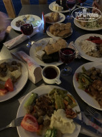 Обед- чуть слабее, но всегда мясо, курица, баранина, в разных вариациях,супы, макароны, рис, картофель фри и по деревенски, опять же зелень и овощи, различные закуски, сладости.