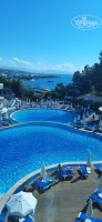 Само здание отеля по сравнению с рядом стоящими новыми отелями – выглядит очень скромно, но зато у него очень большая и шикарная территория, которой не имеет ни один соседний отель. А главное, что мне очень понравилось – грамотное и рациональное размещение каждой зоны (кафешек, спортивных зон, ресторанов, бассейнов и детских площадок) по всей территории отеля, видно, что потрудился ландшафтный дизайнер, сохранив все вековые сосны и подчеркнув всю красоту склона. По всей территории проложены множество дорожек, по которым можно с удовольствием гулять, столики, кафешка, качели и смотровые площадки с прекрасным видом на море и прекрасным видом для селфи. Мы например за день нахаживали в среднем по 15000 шагов. Для ленивых и слабых по территории курсирует маленький автобус. Я могу много писать о своем любимом кафе и красоте, но лучше это увидеть самим.