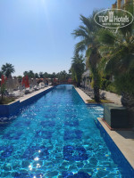 Территория отеля вся в зелени, большую площадь занимает бассейн на улице. Полотенца пляжные можно менять сколько хочешь в день. В помещении отеля тоже есть бассейн, он был с подогревом. Есть сауна, хамам, вам предложат массаж, пилинг за доп. плату.