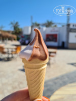 На пляже есть бар с напитками, в нем же с 12 до 16 подают снеки (чаще всего видела картошку фри и какие-то багеты с мясом и овощами), этот же бар вечером превращается в ресторан аля-карт. Запись в него в 10 часов на ресершене на след.день, мы пришли записаться - нам сказали, что уже все занято, хотя было только 10. На след.день пришли в районе 8 утра и записались. В аля-карт ресторане в формате шведского стола были овощи, фрукты и сладости, а основное блюдо на выбор, у нас была курица или рыба, все с рисом. В бар также идешь сам. В общем, по еде от основного ресторана мало чем отличается, выбор намного меньше получается, но поспокойнее.