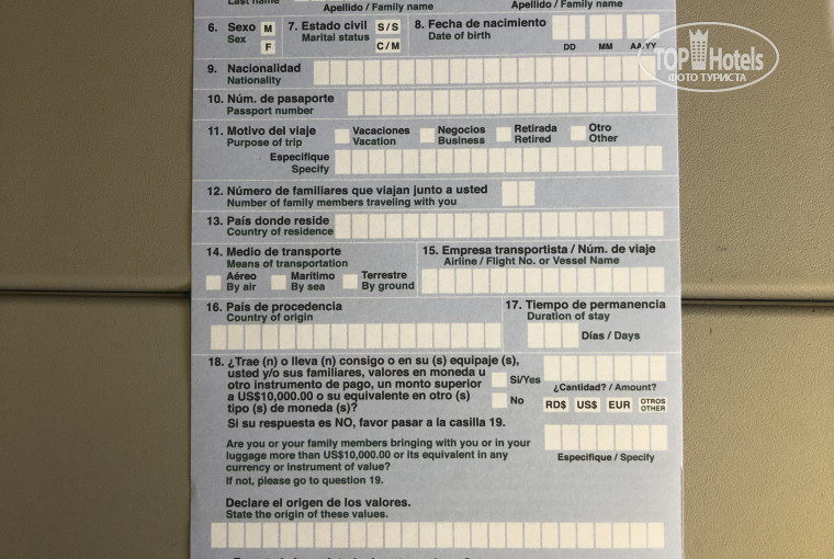 За час до прилета раздают миграционные анкеты. Стюарты не смогли нам ответить на вопрос заменяют ли они заранее оформленные на Сайте Доминиканы миграционные анкеты с QR-кодом или нет. Поэтому пришлось заполнить (образец анкеты прикладываю).