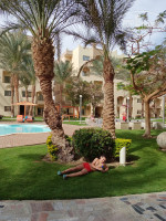 Отель большой, зелёный, пальмы красивые. От аэропорта минут 20-30. За 2 доллара с человека в день дали номер с видом на бассейн. Но даже этот крутой номер с порванными шторами, на бра и настольные лампы следы от убитых комаров. Эти следы везде. Уборка по требованию. Вода каждый день.Бооьше в минибаре ничего не было. Еда стандартная, завтраки обычные, скудные. Море ну ооочент мелкое. Ширина береговой линии метров 100. Слева одни камни, справа песок, вход хороший. Понтон длинный с шезлонгами и несколькими спусками в море. Аквапарк сууперр!!!!!!! Ковриков, плюшек много. Наверху и внизу работники отеля контролируют спуск. 11 взрослых горок, 4 детские и несколько для малышей. Аквапарк работает 2 часа утром и 2 часа после обеда. Анимации нет.ходят 2 девочки и зовут на волейбол и аквааэробику. Вечером развлекаловки нет, ну официально на пляже типа шоу..... Но это ужасно скучно и просто ужасно... 20 минут убогого театра. Вечером на пляже нет ни одного фонаря. Из-за того, что очень короткий световой день, в 18.00 на море с фонариком ходили. Темно везде, море теплое. Башни из песка строили с фонариком от телефона) Вода в бассейнах холодная, не подогревается. Вернулись бы сюда только из-за аквапарка