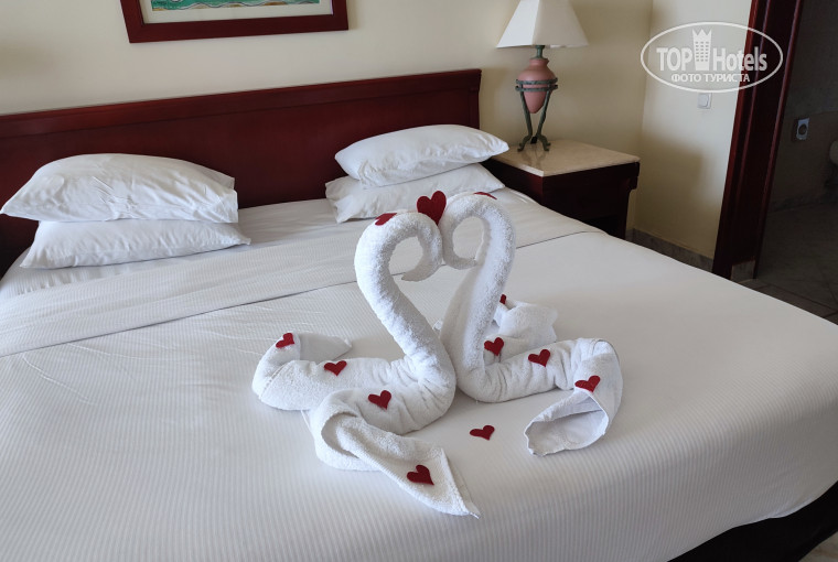 Я сейчас в этом отеле. Удивляют отзывы недовольных. Прилетела ночью,Номер 1305 (в середине этажности) Заселили без проблем. Утром принесли тарелку с фруктами! Чайник, утюг, халаты, тапочки, умывалка - ВСЁ есть! Риф неплохой, рыбась плавает, места для загара есть, фото прилагаю, кормят прекрасно (рыба, говядина, курица) овощи, мне лично чуть не хватает фруктов. Бары, всё работают алкашки пьющим сколько хотят, по системе всё включено тут рекой льётся.убираются норм, у меня лебеди ежедневно! Знаете, красота в глазах смотрящего. Мне лично очень нравится.