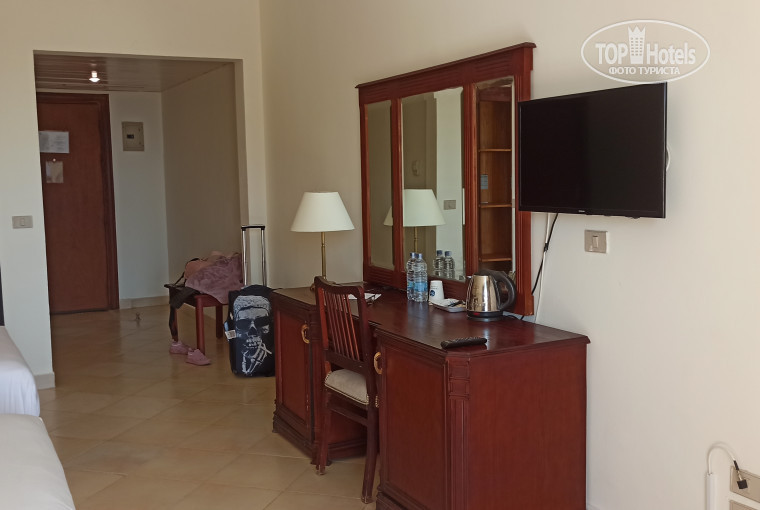 Сразу оговорюсь, что при выборе направления я прекрасно знала, что Египет только открылся для массовых заездов русских после долгого перерыва, учитывала пандемию. Покупая тур в четверку также не ожидала чудес от отеля. Стоил тур 92 тысячи на одно лицо и 10 ночей, стоимость тура (выше,чем у ряда пятёрок) и обилие свежих хороших отзывов внушало мне надежду, что о своем выборе я не пожалею и как минимум не умру в этом отеле). Если бы знала в каком состоянии номерной фонд, однозначно продолжила бы поиски отеля дальше. Я была готова к старой мебели и сантехнике, решила, что легко переживу. А вот к такой грязи в номере я не была готова, так как приехала одна, то я побоялась пытаться заменить отель, мне этот процесс кажется нервным, долгим и неприятным. Ограничилась генеральной уборкой, благо уборщик мне попался просто отличный, за небольшое вознаграждение всё, к чему я предполагала дотрагиваться , было отмыто. Вдаваться в детали не буду, но тряпки приходилось менять очень часто. Ванная отвратительная, акрил с неё сходит слоями, сантехника в плохом состоянии, вода коричневая. В худших условиях я не оказывалась никогда. Но при всей своей брезгливости смогла смириться и получить удовольствие от моря и солнца. Красное море стоило всего не очень приятного и хорошего, что встретилось, неприятности забудутся, а море в памяти навсегда) . Пляж с первого взгляда мне показался очень тесным, соседство получалась гораздо ближе, чем бы хотелось, места люди занимали с раннего утра и до заката, некоторые из них даже приходили к своим полотенцам переодически) . Но свое место под солнцем я нашла быстро - на отшибе, далеко от понтона и удобств, зато в тишине и с крутым видом) Ближайшие соседи как правило весь день были полотенца, хозяева появлялись ненадолго, так что я всем довольна. Море. На рассвете, мне кажется, что я пару раз видела дельфинов. Живность есть уже у берега в лагуне для малышей, а чем дальше, тем интереснее. Упомяну про погоду, мне эта информация перед вылетом была бы очень важна - рассвет около 6 утра, к 8 солнце греет, в обед около 30 градусов,к трем часам солнце есть уже не везде, в 4 часа можно найти места с остатками, около 17 закат. Из 10 дней три были неудачными, облачно, ветер, я откровенно замерзала, один день выпал целиком дождливый. По питанию. Скажу коротко, голодной никогда не оставалась, но вкусно было далеко не всегда. Чтобы не стоять в очереди время завтрака и ужина я подбирала опытным путём, на обед не ходила, жаль было светового дня, если проголодаться, то на пляже можно перехватить сосиску в булке, что-то ещё давали у бассейна, не интересовалась. В барах пакетированный сок и часто газировка из бутылок. На территории постоянно что-то чистят, поливают, ремонтируют - стараются. Я жила в седьмом корпусе, вид на море вдалеке и на здание ресторана в ремонте вблизи. До основного здания идти минут 5-7, по пути несколько лестниц. В ноябре это не было проблемой, а вот в июле мне было бы тяжело. Я хорошо отдохнула, но в данный отель не вернусь и воздержусь его рекомендовать.