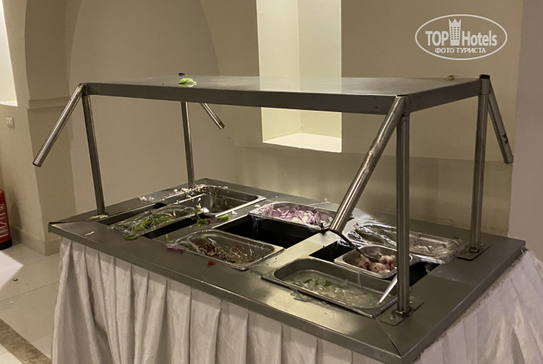 1. Еда. Мы когда пришли в первый раз в столовку, по другому не назвать, просто офигели от того, что лежит в тарелках у гостей отеля: что-то похожее больше на еду для собак. 2-3 маленьких кусочка мяса/рыбы/курицы раз в день на человека: выдаёт специальный работник на раздаче, но больше то и не очень хочется) фото прикрепляю. Когда хотела снять, как выглядит еда в отеле, на меня накинулись втроём официант, шеф и менеджер, говоря о том, что я хочу проблем, короче мрак какой то.