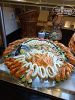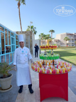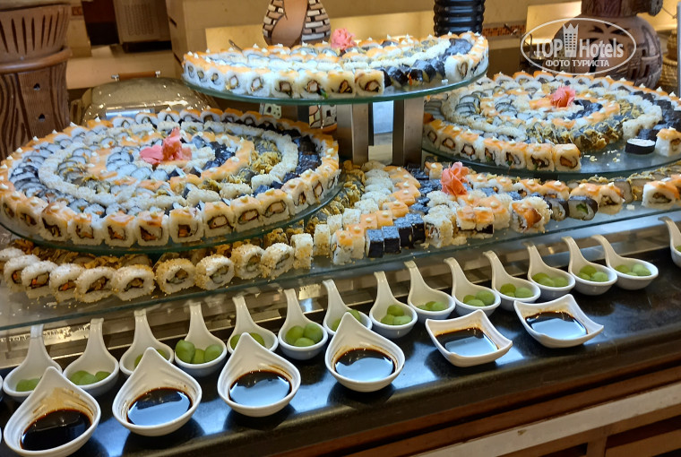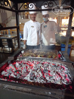 Питание просто шикарное: морепродукты каждый день - вкуснейшие нежные креветки, мидии, кальмар, несколько сортов рыбы, роллы, мясо в самых разных вариациях - жареное, тушеное, шашлык, запеченная утка, оригинально приготовленная баранина, куропатка, супы- пюре 3-4видов, разнообразные гарниры, каши, овощные салаты, приправы, вкуснейшие йогурты, орехи измельченные- грецкие, фисташки, фундук, свежий мед прямо в сотах, на завтрак- свежевыжатые соки манго, гуавы, клубничный, фрукты-манго, гуава, сливы, персики, арбуз, дыня, чай был всегда, а не только во время завтрака, к чаю - маленькие баночки с разными желе и медом и конечно, много-много пирожных, тортов, булочек, бутербродов, мороженое 6 сортов. Всего не перечислить, но вся еда была свежая, очень-очень вкусная. Если что-то заканчивалось, тут же выносили