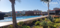 Территория красивая и ухоженная, дорожки по утрам моют с шампунем, бассейнов много но с подогревом только один, аквапарк понравился как нам так и детям. Море было прохладное возле пляжа было место где воды по грудь, дальше по колено.