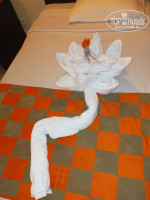 В Египте были в первый раз. В целом, отель понравился. Размещение утром по прилёту, не ждали времени заселения. Номер просторный, балкона нет, но окно открывается. Сейф без оплаты. В нашем номере ловил wi-fi (у тех, кто близко к лобби или окна на бассейн). Уборка нам понравилась, каждый день все меняли и делали красивые фигуры из полотенец. У нас в номере всегда было чисто.