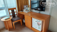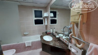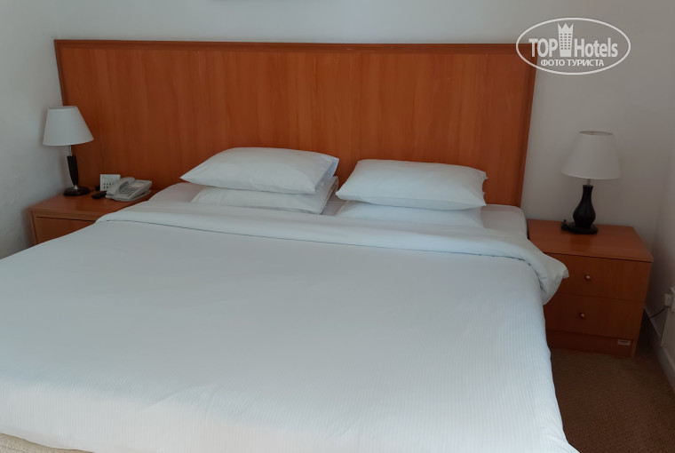 По оборудованию номера претензий нет, всё в наличии и всё работает, не новое, но вполне исправное. Розетки вот только там «англоязычные», что-то я заранее не подумал об этом. Попросили у русскоговорящего молодого человека на ресепшене переходник, обещал принести, но мы так его и не дождались, в итоге вечером купили сами за 15 дихрамов в соседнем магазине.