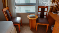 Номер достался во «втором» корпусе 2-601 на 6 этаже. Вид из окна номера - в торец соседнего здания, которое расположено буквально в считанных метрах от нашего окна и наискосок веден городской пляж (левее пляжа нашего отеля). Так как у нас был забронирован номер с видом на город да и вообще вид из окна нам глубоко по барабану, с этим делом проблем не возникло. Судя по наличию небольшого коридорчика и закрытой двери в соседний номер – это номер сдвоенный. А что касается этого второго корпуса, так в дальнейшем выявился и его плюс – отдельный вход прямо к лифту, не надо по пути с пляжа или на пляж обходить через главный вход на ресепшен, сразу от светофора, к лифту и в номер.