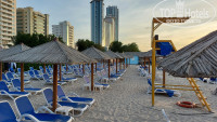 Порадовал пляж, кроме того, что он рядом через дорогу, там есть всё, что надо и всем всего хватает, всё бесплатно. Хорошие шезлонги, столики, грибки, раздевалки, душ, полотенца на входе, бар с напитками. Мелкий чистый песок как в воде, так и на пляже. Только вот море мелковато, после обеда, когда начинается отлив, у буйков уже только по только по грудь, все, естественно, перелазят за натянутое ограждение, что не здорово.