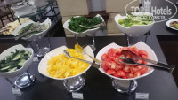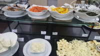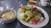 Питание в ресторане ( у нас были завтраки и ужины ) всё очень вкусно приготовлено ( спасибо работникам пищеблока), свежее, разнообразное, официанты работали быстро и были вежливы. Единственное, что зал основного ресторана не очень большой для такого отеля, в сезон наверное будет проблематично ( правда есть летняя веранда), фото прилагаю.